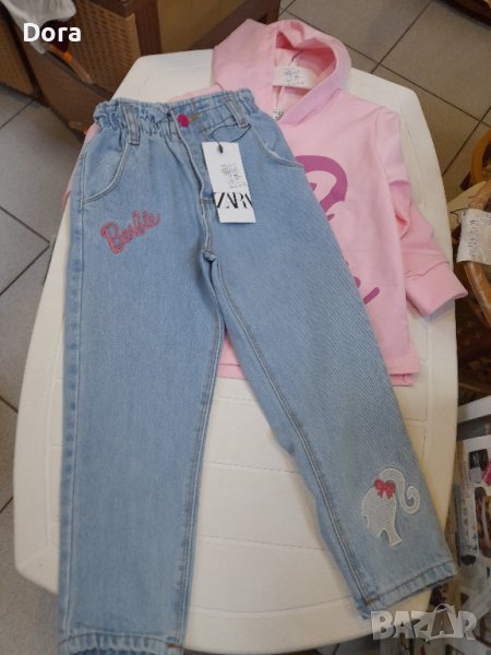 детски комплект състояща се от горна част суичърт с качулка и щампа с Барби ,долна част е дънки с щампа Барби на крачола и бродиран надпис Барби .Долницата е дънкина материя .Производител е фирма Zara.Артищула може да намерите на ул.Др.Пискюлиер Ном.6 Варна