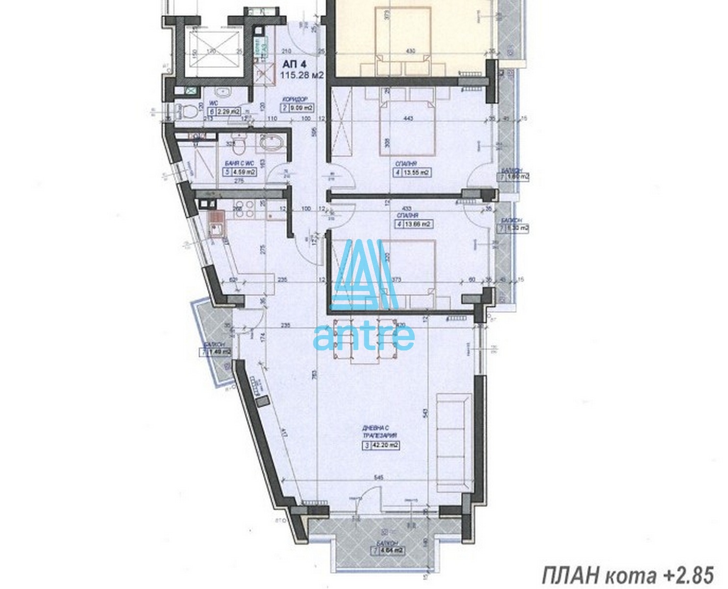 Конкретно обявеният имот (Ап. 4) е със следните параметри: