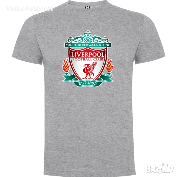 Новa мъжкa тениска в червен или сив цвят на футболния отбор Ливърпул (Liverpool). Произведена от 100% памук с плътност на тениската 165гр. м². Тениската е странични шевове, четирислойно кръгло деколте и подсилени двойни шевове на деколтето и раменете. Подходяща както за ежедневна употреба, така и за спорт или тренировка в свободното време.