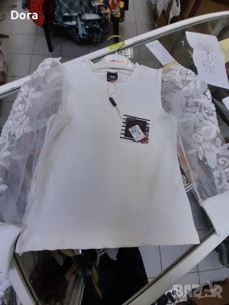 детска блуза от памук с ръкав от тюл с финна бродерия по ръкава.Артикула се намира в магазина на фирмата на ул.Др.Пискюлиев ном.6 Варна