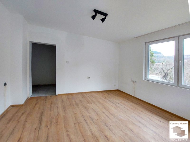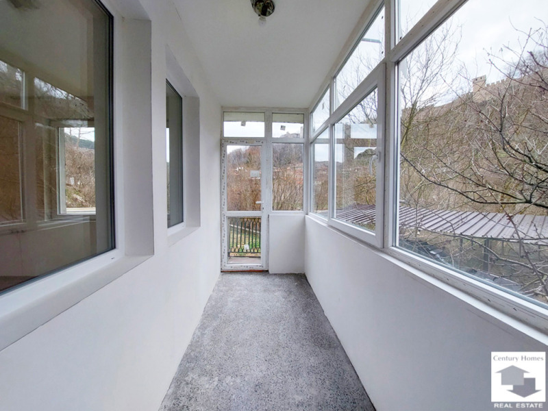 Жилището се намира на първи етаж и е с площ от 90 кв. м., разпределени в две спални, кухня, баня, отделна тоалетна, коридор и дневна, към която има остъклена тераса с прекрасна гледка към Царевец и изход към двора.