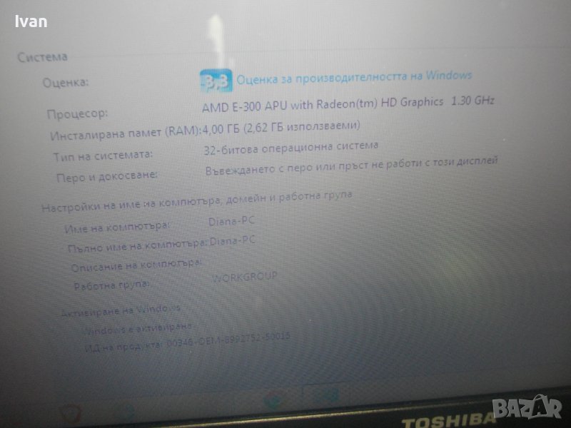 Отличен Лаптоп TOSHIBA Satellite C660D-19X-Ram 4 GB-120 HDD-AMP E 300-Radeon Graphics 1,30 GHz-Win7