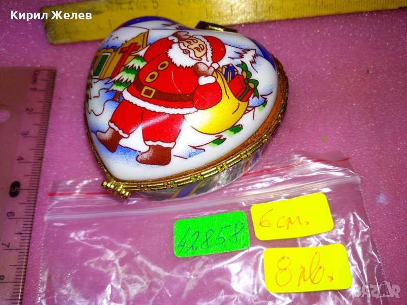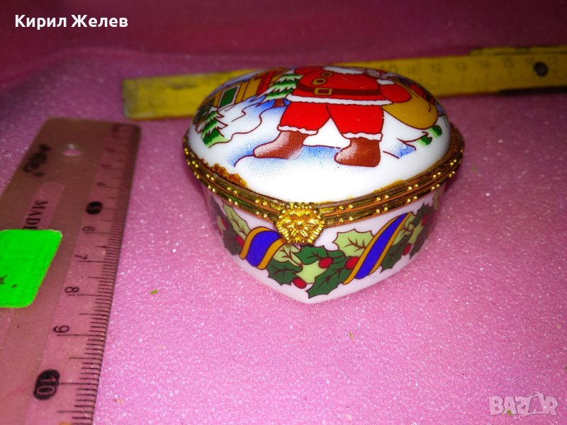 КРАСИВА ПОРЦЕЛАНОВА КУТИЙКА За БИЖУТА - СЪРЧИЦЕ с КОЛЕДНА ТЕМАТИКА ДЯДО КОЛЕДА на КАПАЧЕТО 42858