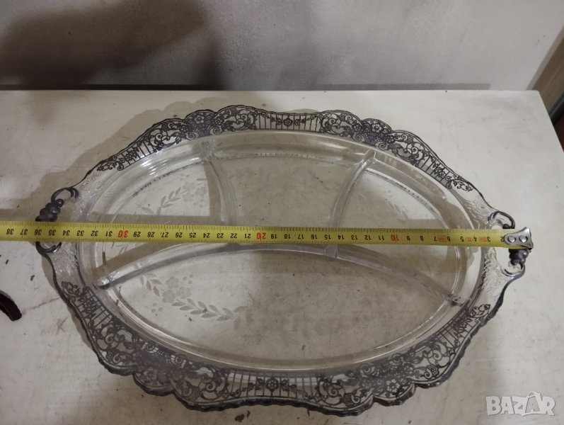 Кристален съд ръчно инкрустиран с сребъ ни или посребрени метални набивки според мен.