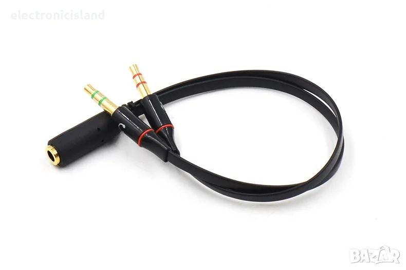 Адаптер Преходник Гнездо от 3,5 мм женски към 3,5 мм мъжки жак (стерео аудио + микрофон), плосък → Обява 44313146