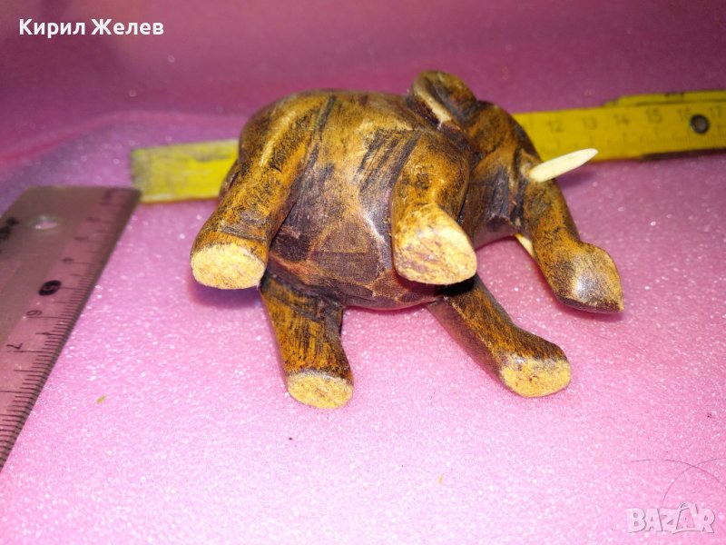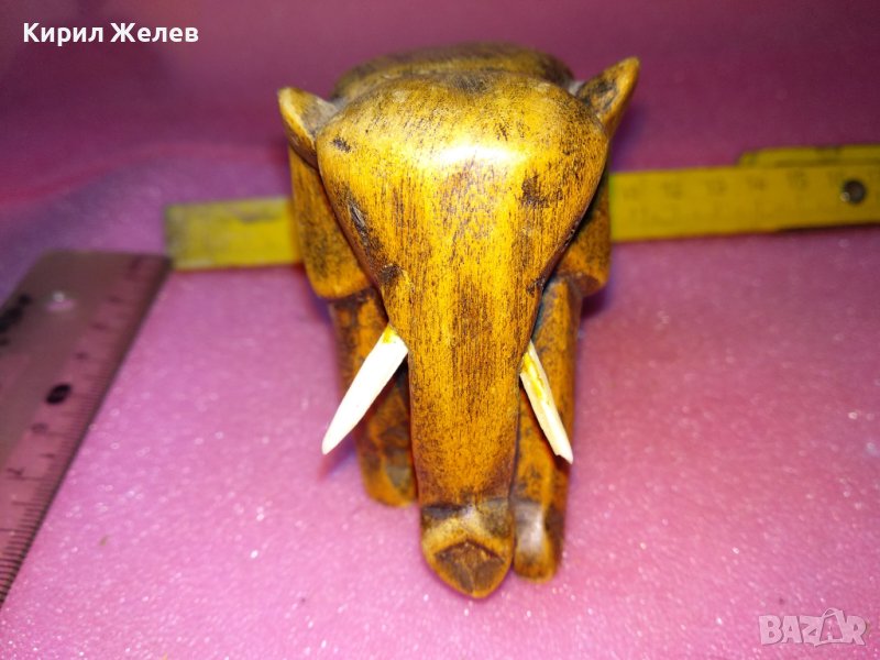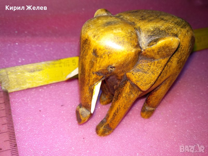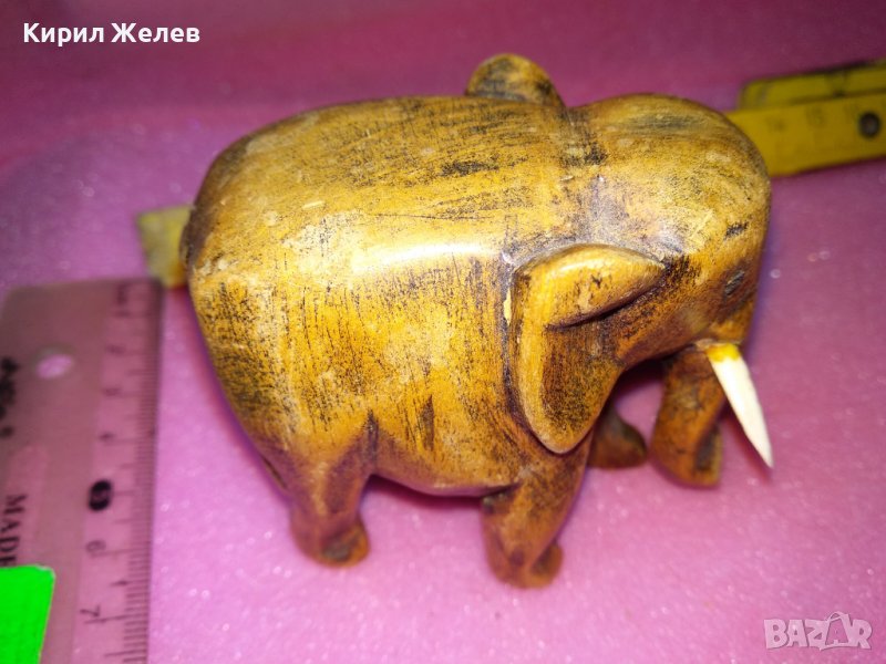 СТАРО ДЪРВЕНО СЛОНЧЕ ДЕКОРАТИВНА ФИГУРКА с БИВНИ от РОГ КОСТ РЪЧНА ИЗРАБОТКА 76391 → Обява 44313748