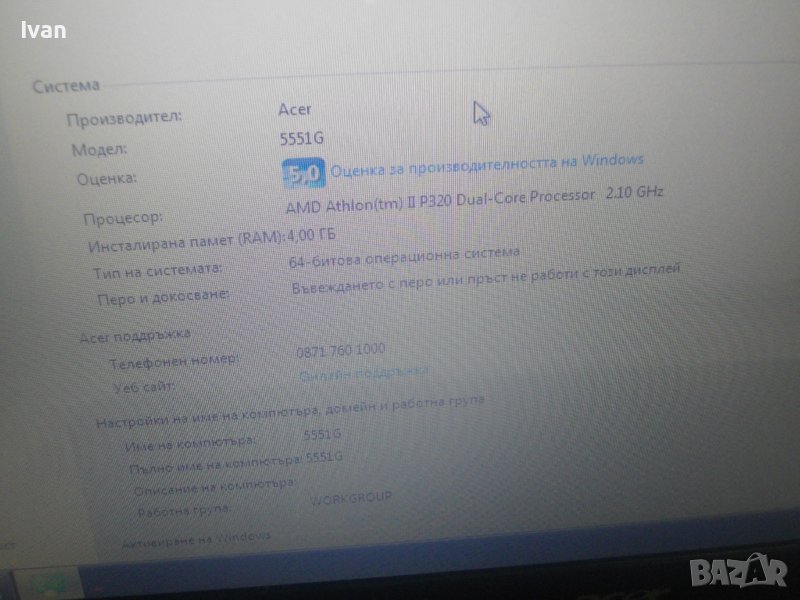Цена на лаптопа със зарядно и батерия ACER Aspire 5551- 199 лв.