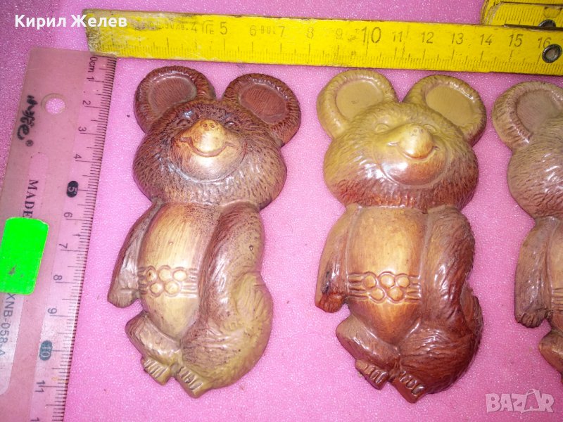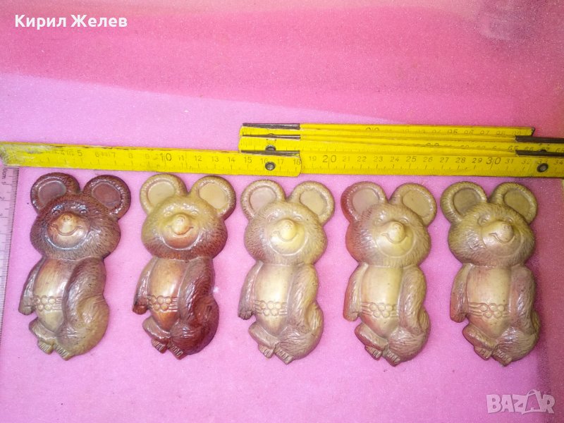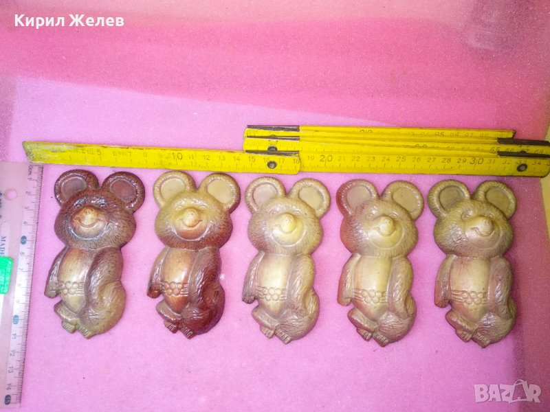 5 СТАРИ БАКЕЛИТЕНИ МЕЧЕТА МИША ТАЛИСМАН на ОЛИМПИЙСКИТЕ ИГРИ МОСКВА 1980г. СССР СУВЕНИР РЕДКИ 246666