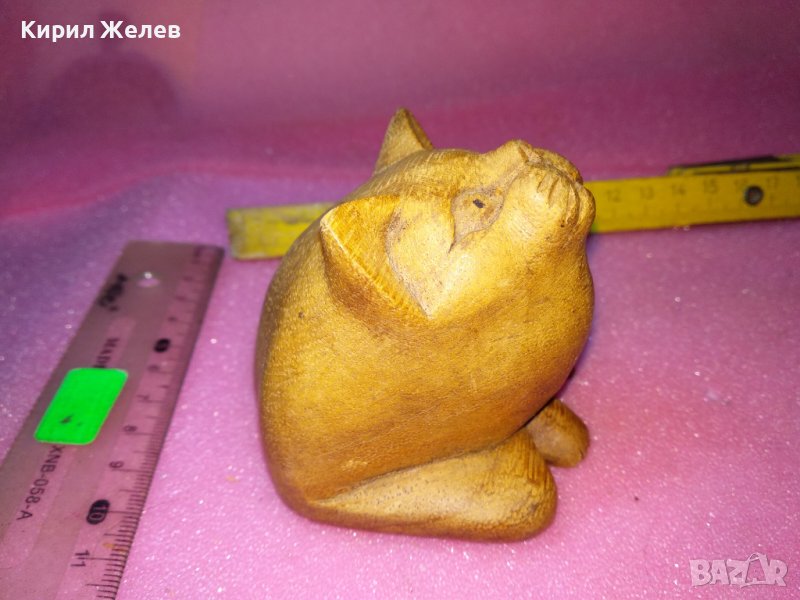 СИМПАТИЧНО МАЛКО СЛАДКО КОТЕНЦЕ ДЕКОРАТИВНА ДЪРВЕНА ФИГУРКА Стара РЪЧНА АРТ ИЗРАБОТКА 42883
