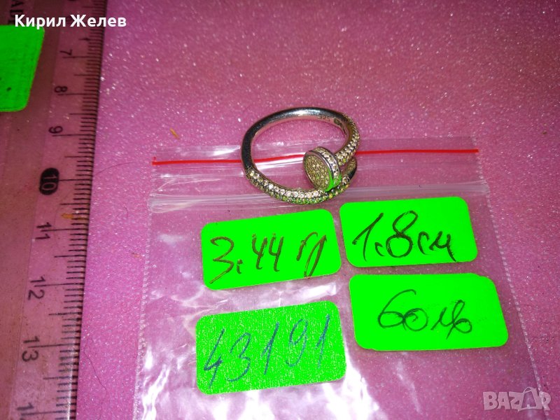 ПРЕКРАСЕН НЕЖЕН АРТ РЕГУЛИРУЕМ СКЪПОЦЕНЕН СРЕБЪРЕН ПРЪСТЕН СРЕБРО 925 АНГЛИЯ с ИСКРЯЩИ ЦИРКОНИ 43191