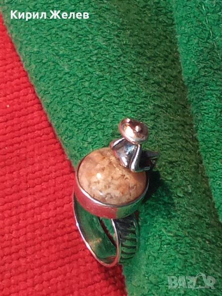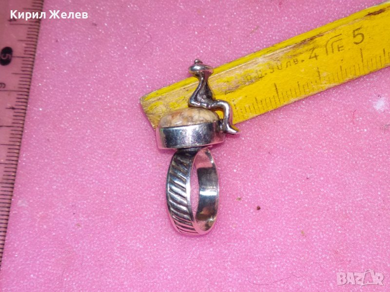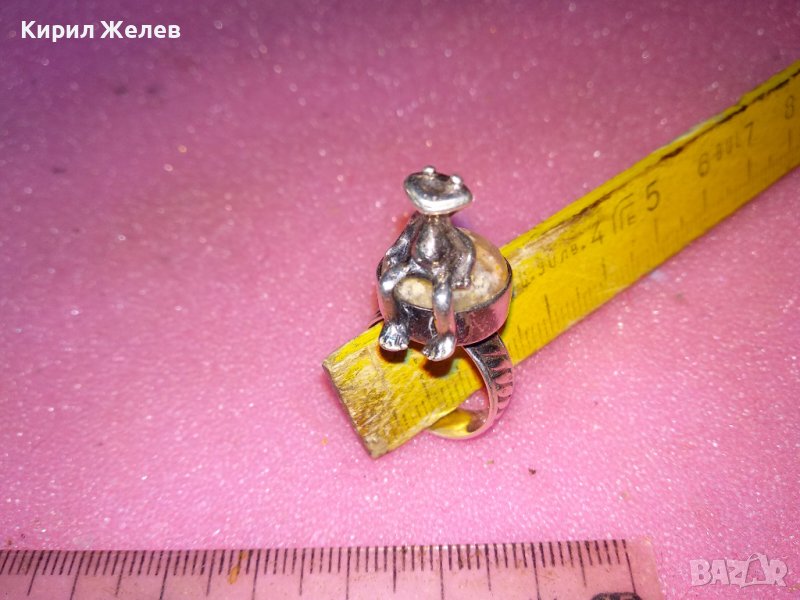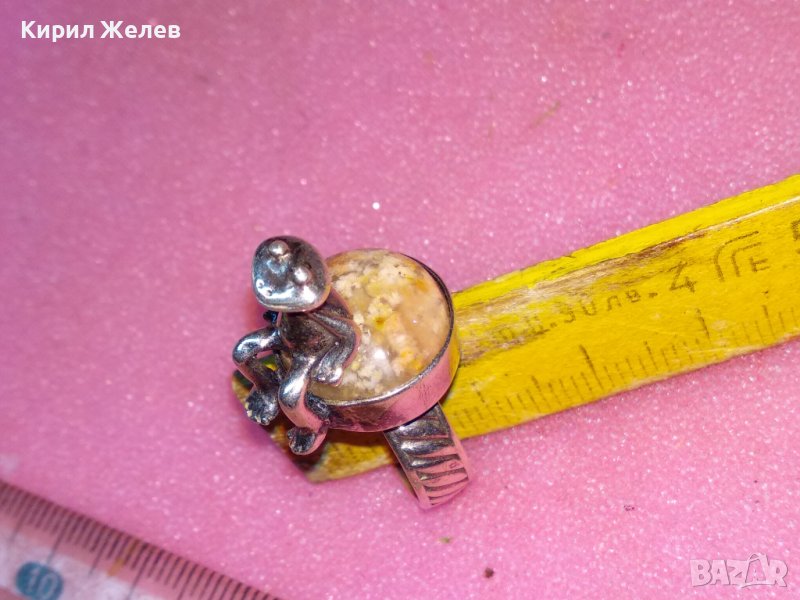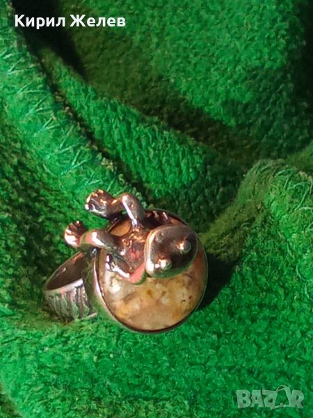 СТАРИНЕН СКЪПОЦЕНЕН СРЕБЪРЕН ПРЪСТЕН УНИКАТ Англия ВИСОКА ПРОБА СРЕБРО ЦИТРИН и СРЕБЪРНА ЖАБКА 31210