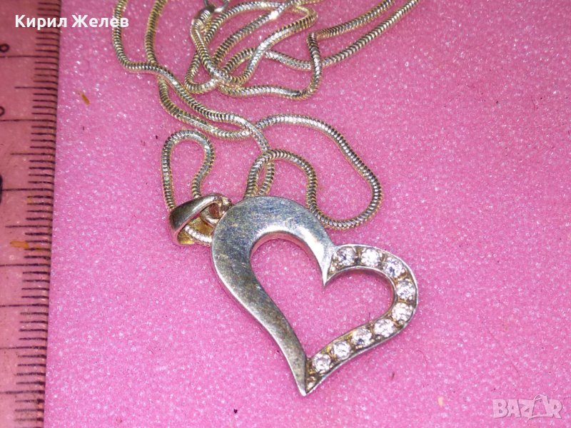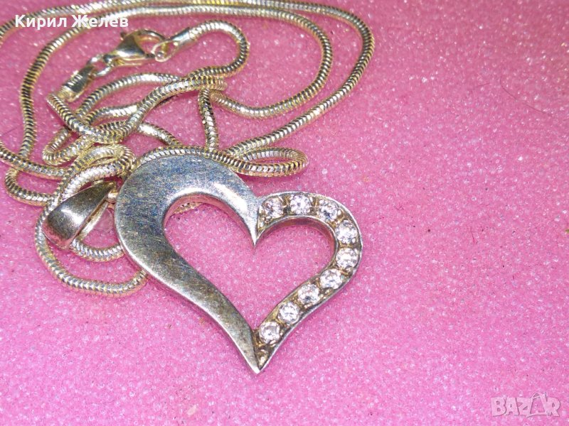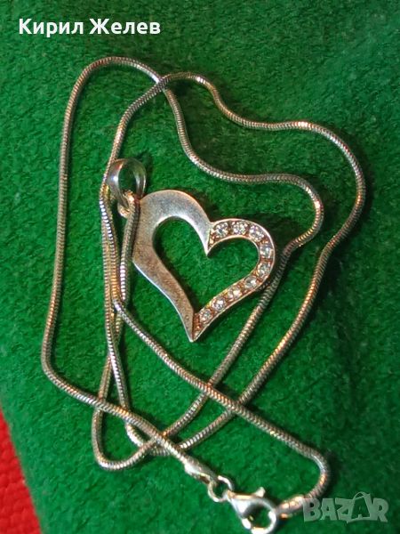 ИЗЯЩНО НЕЖНО СРЕБЪРНО КОЛИЕ с РОМАНТИЧЕН СРЕБЪРЕН МЕДАЛЬОН СРЕБРО 925 с ИСКРЯЩИ ФАСЕТ ЦИРКОНИ 41847