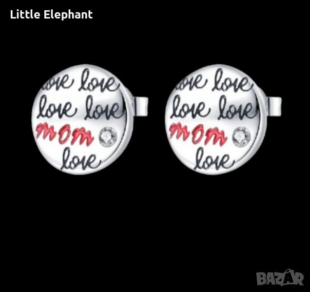 Дизайнерски модел сребърни обеци"Love mom"/нови → Обява 44318873