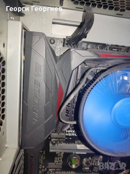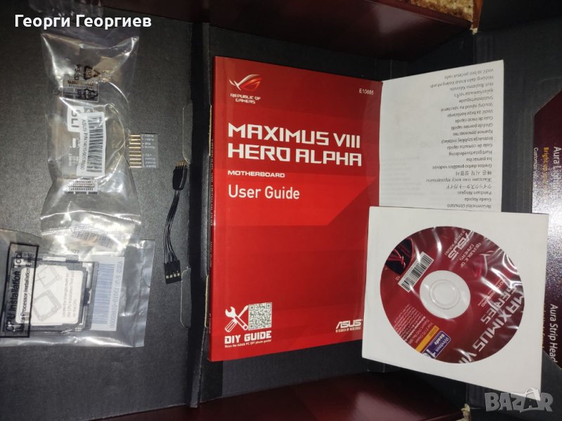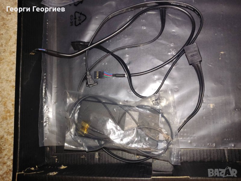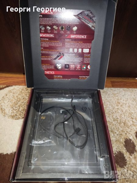 Дъното е в отлично състояние без никакви проблеми, ремонти и т.н, в момента е в сглобена конфигурация и съм го снимал колкото позволява снимането в кутията. Повечето аксесоари са налични - вижда се в кутията му какво има. Налична е антената за WI-FI. Има и задната ламаринка I/O shield.