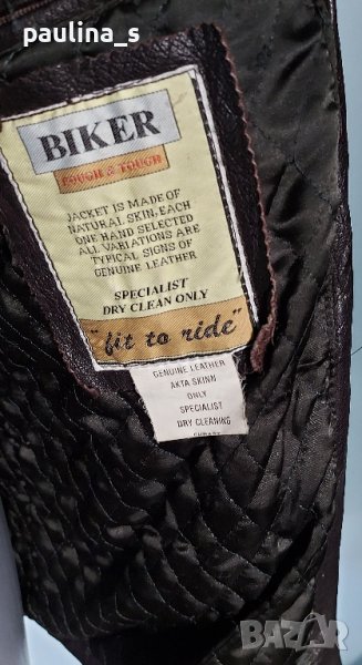 рокерско яке в перфектен вид, голям размер, без дефекти, една бройка е, става за посочените размери. Цветът е тъмно кафяв.