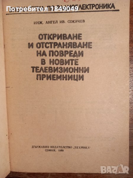 Ангел Сокачев "Откриване и отстраняване на повреди в новите телевизионни приемници" - 0.50 лв./1989г.,меки корици/.