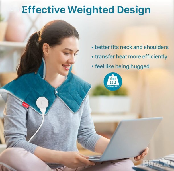 Comfytemp Heated Neck Wrap, революционно решение за успокояване на болки във врата и раменете. Тази иновативна обвивка разполага с утежнен дизайн за подобрен комфорт и стабилност, осигурявайки целенасочена топлинна терапия с 9 регулируеми нива на нагряване, за да отговарят на индивидуалните предпочитания. Оборудван с таймери за автоматично изключване за безопасност и удобство, той предлага универсална употреба като нагревател за врат или обвивка за раменете. Идеален подарък за мъже, жени и възрастни хора, този продукт съчетава топлина и релакс за максимален комфорт и облекчение.