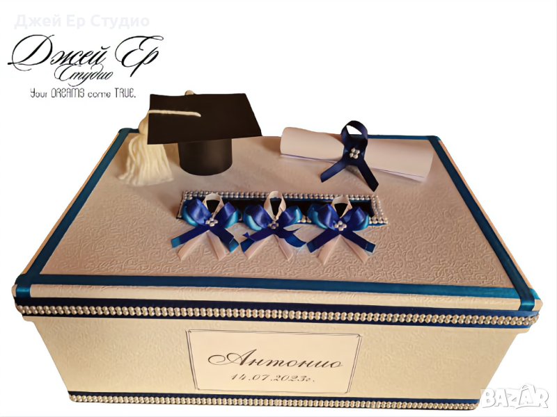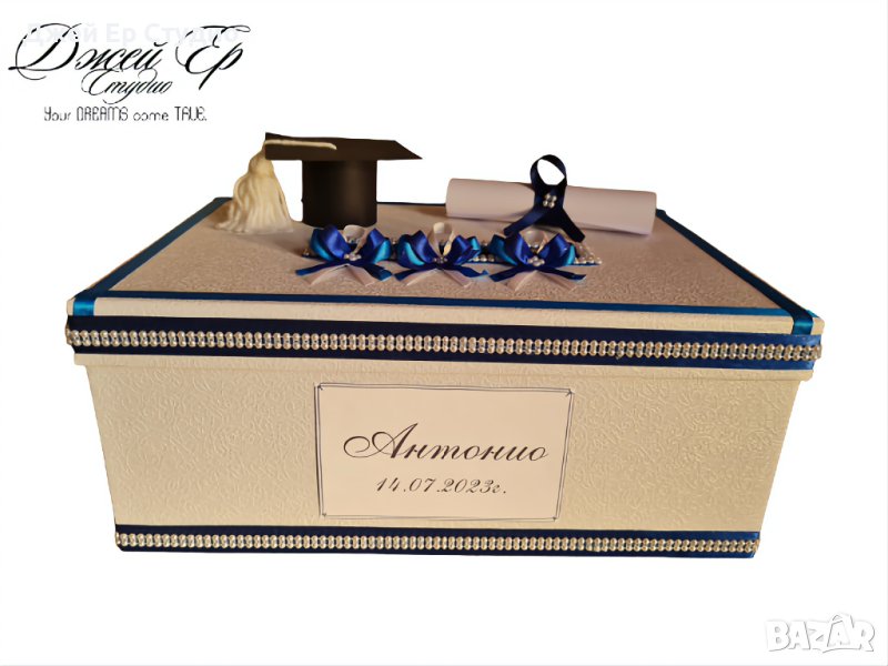 Кутия за пликове/парични подаръци/картички подходяща за абитуриентски бал. Срок на изработка 12 работни дни.