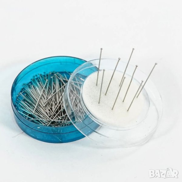 Шивашки топлийки в удобна кутийка. Върху капачето има дунапрен, върху който може да набождате иглите при работа.