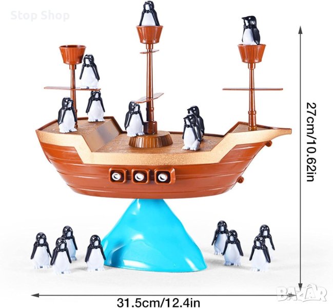 Монтесори играчка за баланс | Игра за балансиране на пиратски кораб за деца, играчка за пиратски кораб, игра за балансиране на пиратски пингвин за семейни настолни игри или декорация на работния плот