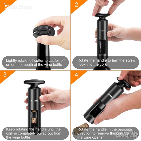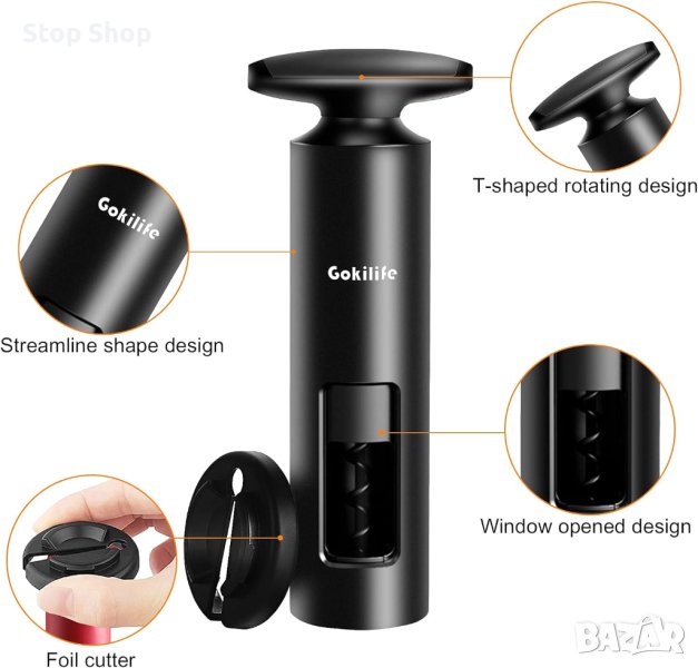 Безопасна и издръжлива】 Отварачката за вино Gokilife е изработена от хранителен ABS и неръждаема стомана, с ергономичен дизайн, усещането при допир е много гладко, удобно за хващане, не е лесно да се зацапа с пръстови отпечатъци, защитно покритие за храни, безопасно и издръжливо.