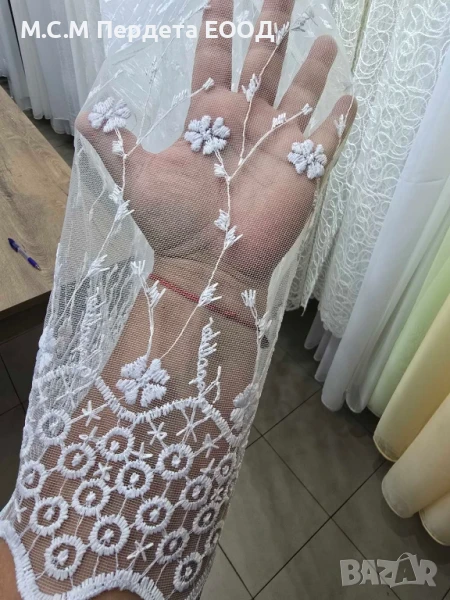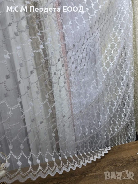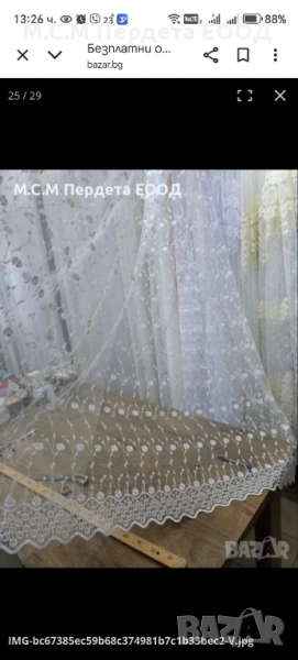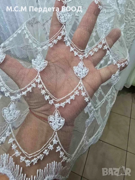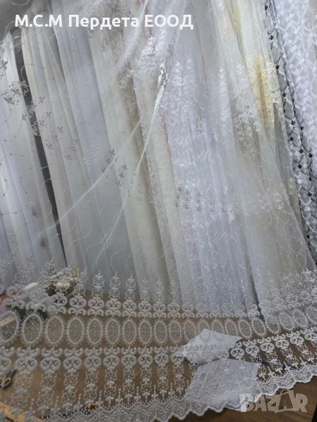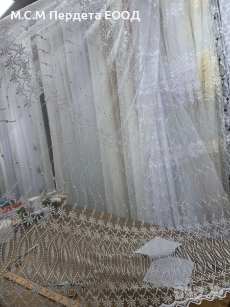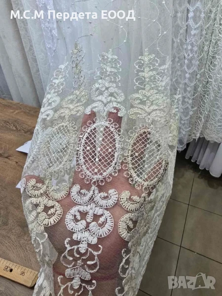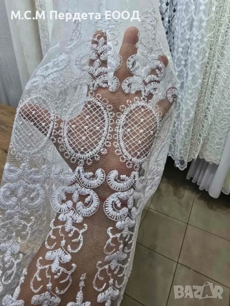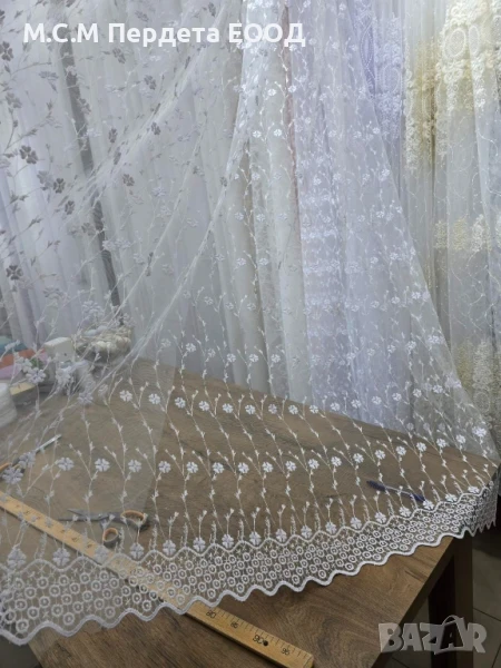 Плат - ефирна дантела за пердета на цената от 8.00 лв.л.м. на 2.80 л.м. височина . Ушиване по ваши размери .