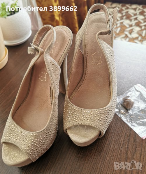 Обувките са обличани само веднъж за повод. Имат допълнителни подложки за токчетата, както и камъчета за залепване.