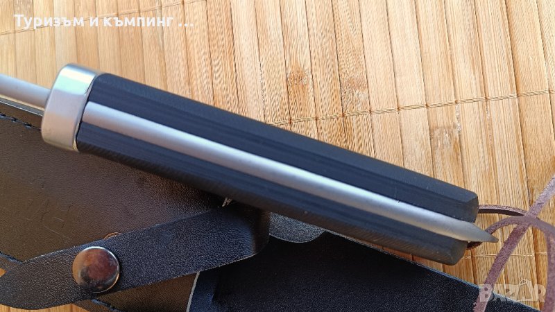 Ножа има кожен калъф и кутия показани на снимките.