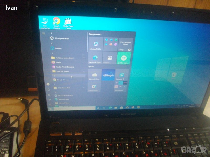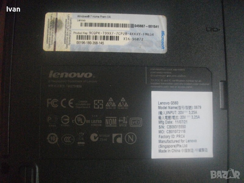 Цена на лаптопа Lenovo G 560 с батерия, оригинално зарядно и чанта от обявата - 449 лв.