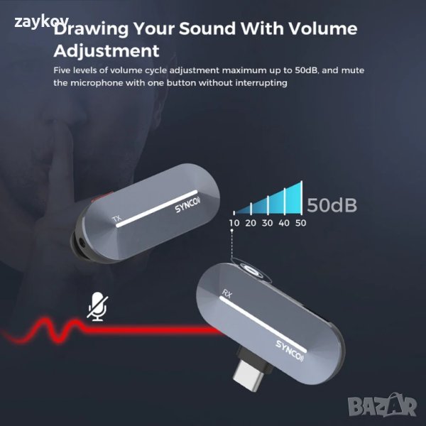 【LOS предаване на дълги разстояния от 150M】Мини микрофонът SYNCO щепсел към телефон P1S предлага стабилен и ясен звук на разстояние от 150 метра (LOS обхват). Той може да филтрира нискочестотния шум и да възпроизвежда звука автентично и чисто. Това става възможно благодарение на Syncoder 3.0 и интелигентен DSP чип.