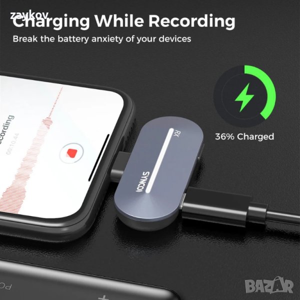 【Бързо сдвояване и лесна работа】Свързано с контакт чекмедже за зареждане улеснява и ускорява сдвояването. За да започнете безжичен запис, просто извадете чекмеджето, задръжте натиснат бутон за три секунди и свържете RX към устройство с Lightning порт или USB-C интерфейс.