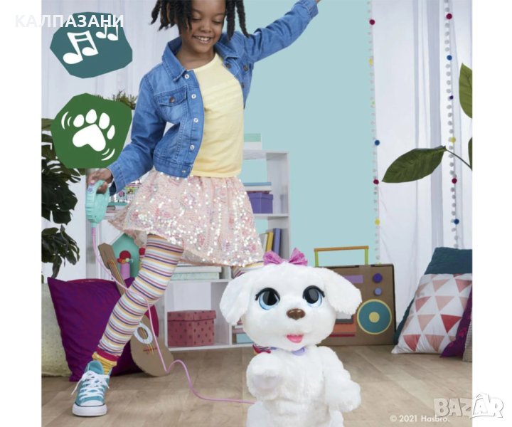 Ако обичате както домашни любимци, така и танци, домашният любимец furReal GoGo My Dancin' Pup Interactive Toy със сигурност ще раздвижи краката ви! Джоджо очарователната електронна играчка за танци, се предлага с лесна за използване автоматична каишка. Натиснете бутона за танци на каишката и тя ще се изправи да танцува, докато свирят 5 различни песни! Натиснете бутона за разходка на каишката на Джоджо и можете да я заведете на разходка, докато издава всякакви забавни звуци. С повече от 50 звука и реакции, този сладък аниматронен домашен любимец е пълен с изненади. Движението на Джоджо докато върви, е невероятно очарователно! Това танцуващо кученце би било чудесен подарък за деца на възраст 4 и повече години, които обичат домашни любимци и танци.