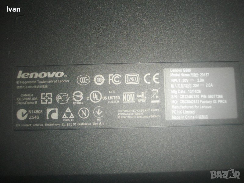 Марка и модел - Lenovo G 585.