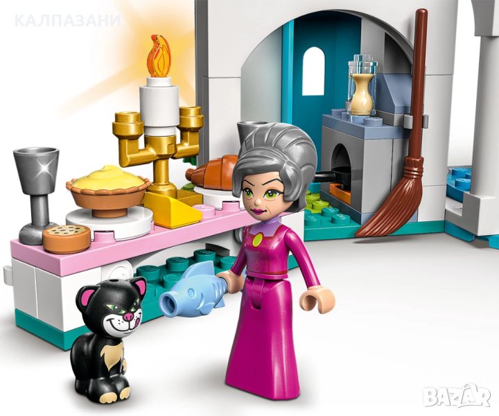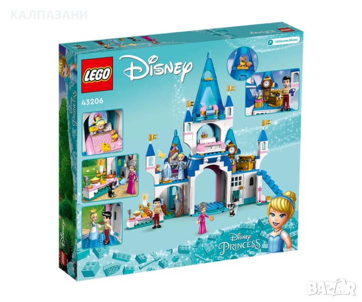 Строителите на замъци или феновете на принцесите на Disney на възраст 5+ получават много възможности за игра с този комплект LEGO® ǀ Disney Замъкът на Пепеляшка и Чаровния принц (43206), включващ замък на 3 нива, 3 фигури миникукла и 2 фигури на животни от LEGO, плюс интерактивни инструкции в цифров вид, които да направят строителството още по-забавно. В безплатното приложение на LEGO с инструкции за построяване има интуитивни инструменти, които помагат на децата да визуализират модела, докато строят. Конструиране и игра Този детайлен комплект е изпълнен с функции и аксесоари за забавление, докато децата играят ролеви игри и пресъздават любими филмови сцени или създават свои собствени. Замъкът разполага с бална зала с въртящ се дансинг, студио за рокли, където децата могат да сменят роклята на Пепеляшка, килер с работеща котешка врата и други детайли, насърчаващи безкрайна творческа игра. Много забавни герои С този комплект децата могат да започнат да играят бързо с фигурите на принцесата на Disney Пепеляшка, Чаровния принц и Лейди Тремейн, плюс фигурите на животни Гюс Гюс и Луцифер от LEGO, и той е впечатляващ подарък за всеки фен на Disney;