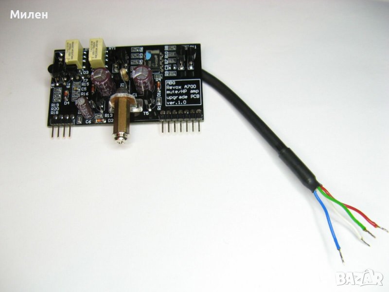 Ъпгрейд модул за старите версии на Revox A700 - добавя мютинг на изхода при включване/изключване и спасява стрелковите индикатори от началния трясък при включване, което рано или късно води до дефекти. При монтажа се налага да се прекъснат две връзки за левия и десния канал (прикачил съм снимки къде точно), за да се върже последователно на изходните кондензатори, за да функционира правилно.
