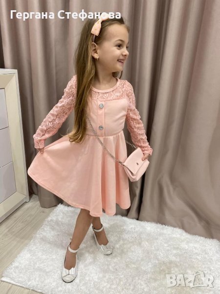 Нежна рокля с дантела и чанта Размери -4г.6г.8г.12г.14г. Цена -48 лв