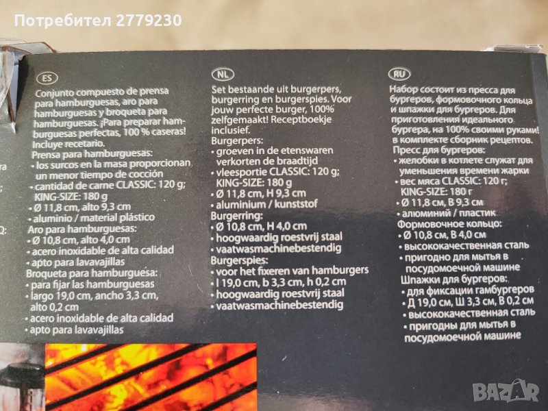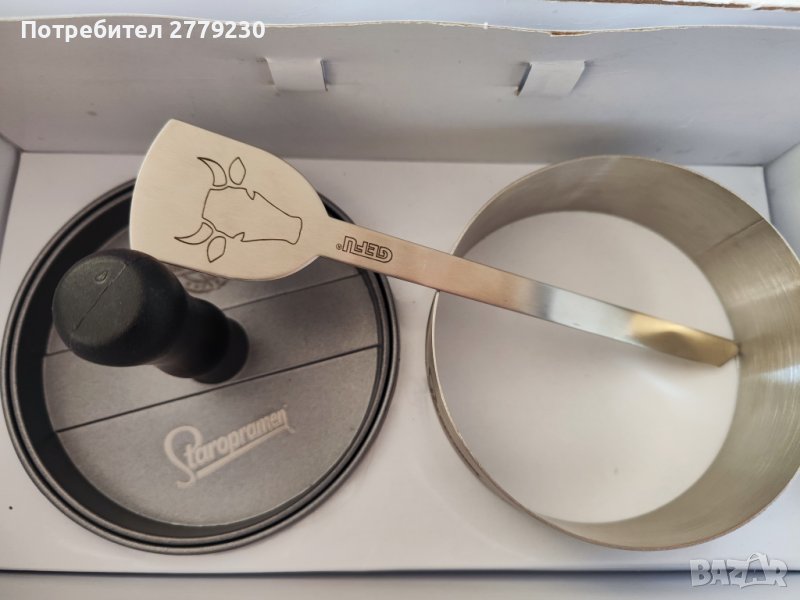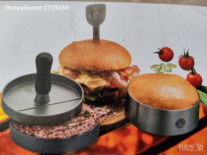 • Комплект от 3 части - бургер преса, бургер пръстен и бургер шиш