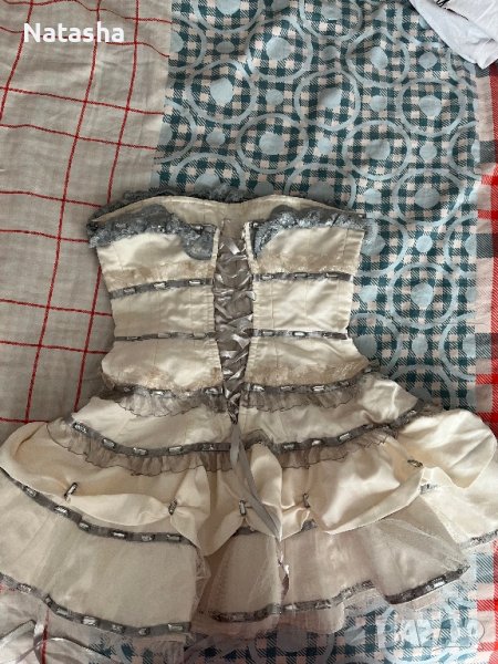 Рокля тип кокетна, изработена по поръчка, дантела, камъни тюл. По нея има голям асортимент от елементи. Много красива. Роклята е по модел на певицата Андреа обаче в друг цвят.