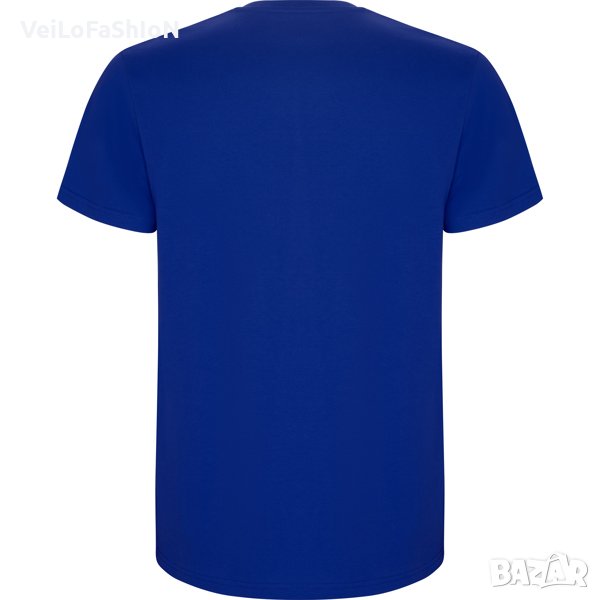 Нова мъжкa тениска в син цвят. Произведена от 100% памук с плътност на тениската 190гр./м². Тениската е безшевна с тънко деколте съдържащо ликра за по-голяма здравина при обличане. Подходяща както за ежедневна употреба, така и за спорт или тренировка в свободното време.