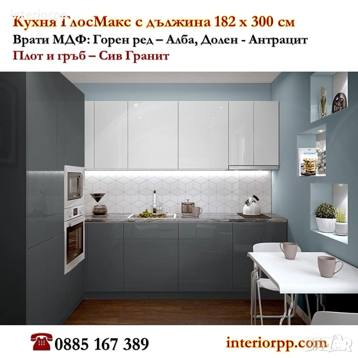 Кухня МДФ Глосмакс 182 х 280 см от модулни шкафове / без плот /
