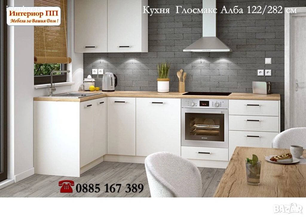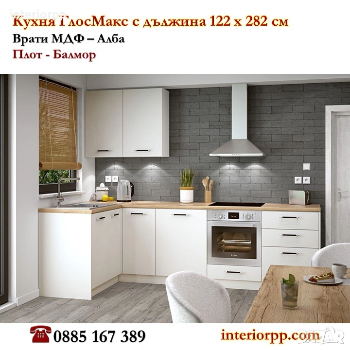 Кухня Глосмакс 122х282 см ъглова - Алба. Безплатен Проект за Вас.