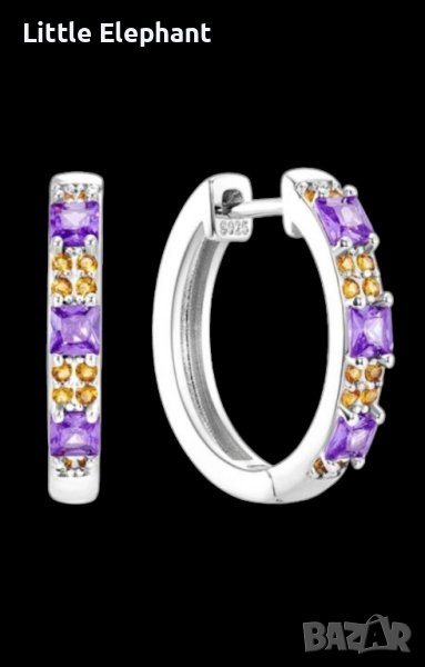 Дизайнерски модел сребърни обеци халки с кристали,pink and purple/нови → Обява 44339930
