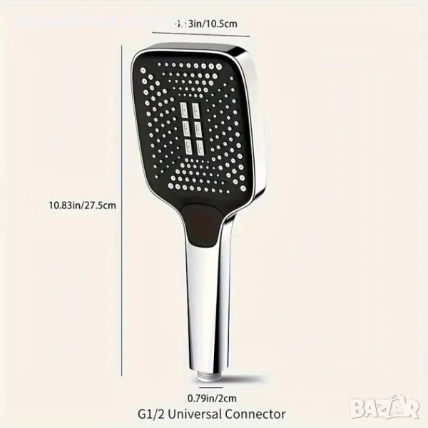 Правоъгълна Душ Слушалка с 4 режима на струята, ефект на дъжд, голяма