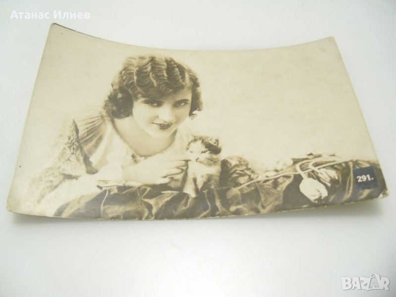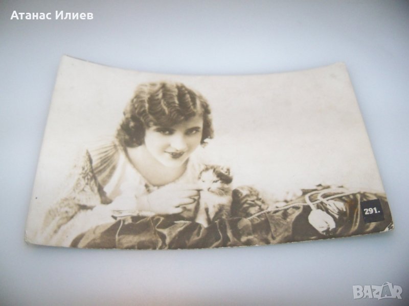 Момиче с котенца, стара романтична картичка → Обява 44342879
