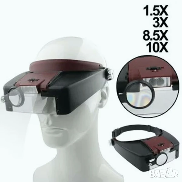 Комплект увeличителни очила - лупи LED Headband Magnifier с LED осветление и регулиране на увеличението до 10 пъти.