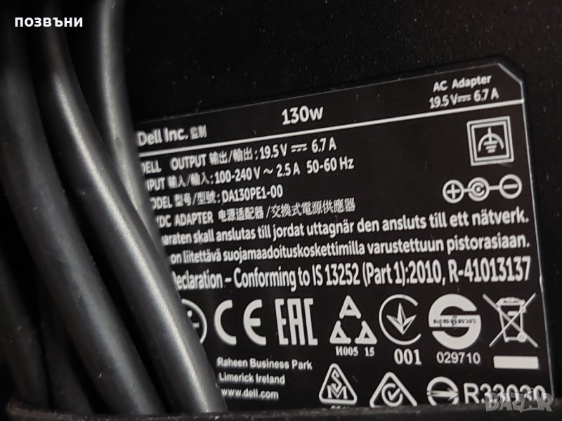 Оригинално зарядно за лаптоп Dell 130W 19.5V 6.7A, снимка 1 - Части за лаптопи - 44343559 Оригинално зарядно за лаптоп Dell 130W 19.5V 6.7A, снимка 2 - Части за лаптопи - 44343559 Оригинално зарядно за лаптоп Dell 130W 19.5V 6.7A, снимка 3 - Части за лаптопи - 44343559 1/3