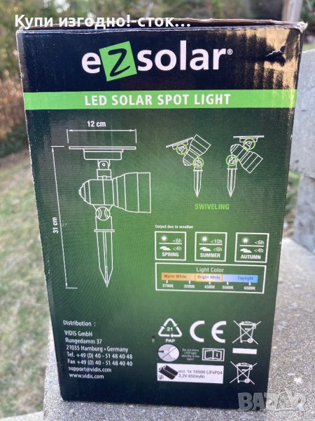 Градинска Соларна лампа eZsolar , снимка 1 - Лед осветление - 44348945 Градинска Соларна лампа eZsolar , снимка 2 - Лед осветление - 44348945 Градинска Соларна лампа eZsolar , снимка 3 - Лед осветление - 44348945 1/3