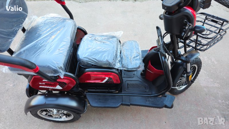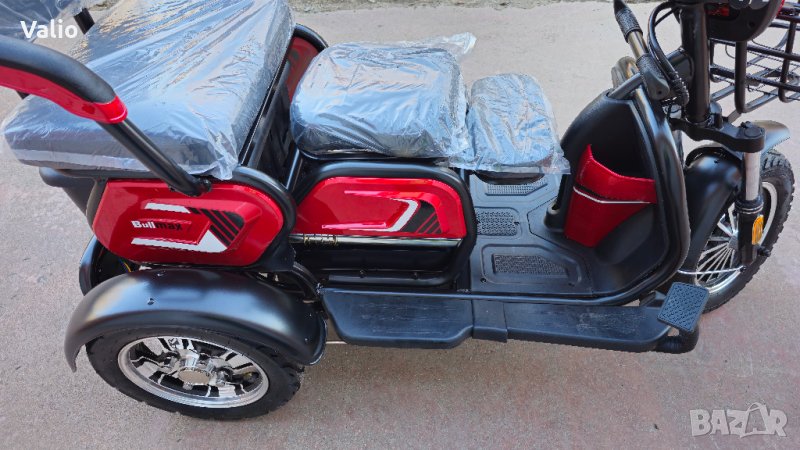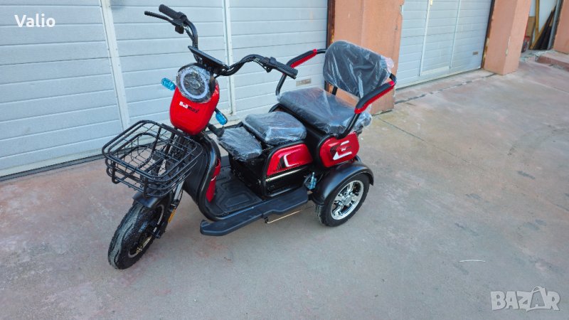 Уникална двуместна триколка C1 – без аналог на пазара.Триколката е с дигитално табло, три нива на скоростта, стопове, мигачи и габарити,LED фар.Предна и задна ръчни спирачки.Крачна спирачка.Голям кош за багаж.Триколката е с вградена втора седалка за допълнителен пасажер, като самата седалка се движи във височина, което създава удобство за нисък или висок човек.Технически характеристики:Размер на триколката: 1530x750x950mmЕлектромотор номинал 750 W макс 1250 WТип батерия: Lead acid battery 48V20AHВолтаж: 48VРастояние с един заряд до 50 километра в зависимост от терена и водачаТри типа скорост: Бавна – до 15км/ч, средна до 25 км/ч, бърза до 35 км/чРежим на предаване: Диференциален електромоторРазмер на гумите: 3.00 х 10.00 Vacuum tyreСпирачки – предни и задни барабанниПреден двоен шоков амортисьорЗадни амортисьори - подсилениВисочина от земята – 24 смВреме за зареждане 8 часаСпирачен път – 5 метраМатериал на корпуса – висококачественна ABS пластмасаМаксимална товароносимост – 160 килограмаИзкачване до 15 градусаБруто тежест – 120 килограмаНето тежест – 105 килограмаДжанти – алуминиевиАмортисьори – подсилениОкачване - подсиленоЦвят: Червен, бял,син,кафяв и зелен
