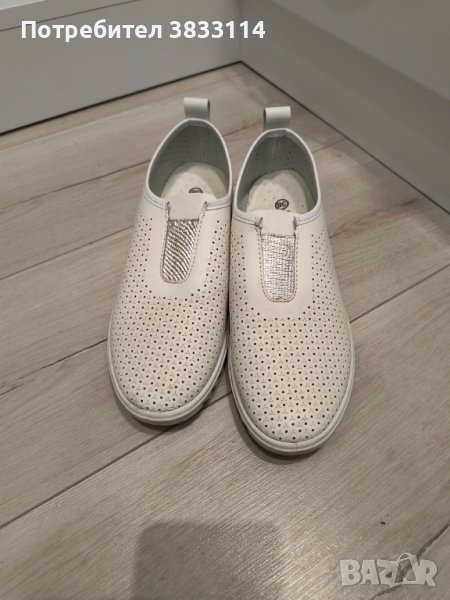 Дамски бели кожени обувки, много леки и удобни, като нови, обувани веднъж. Отговарят си на номера.