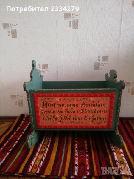 Автентична бебешка люлка-легло изцяло ръчно изработена от дърво и рисувана. Красива майсторска изработка подходяща за декорация на